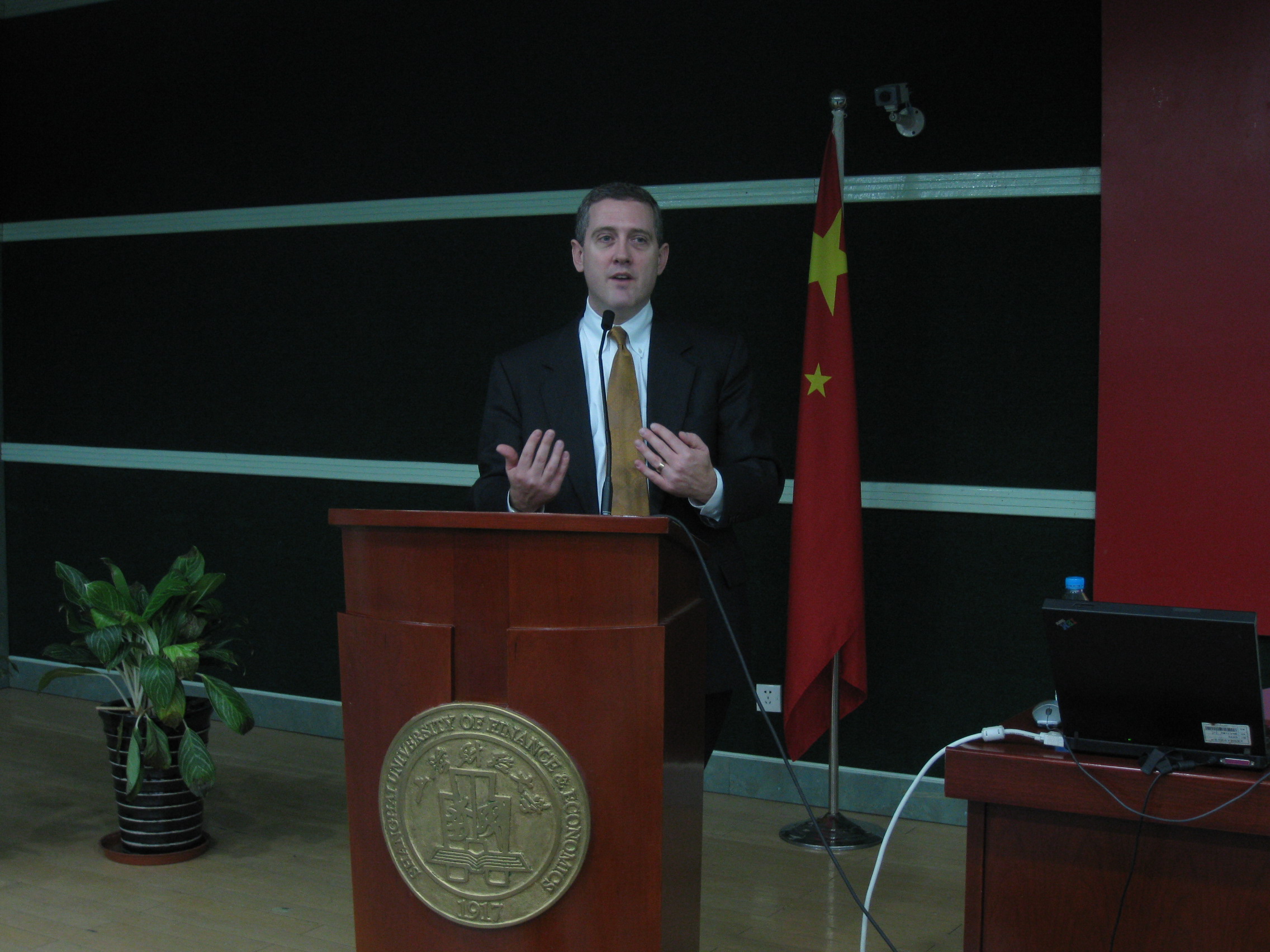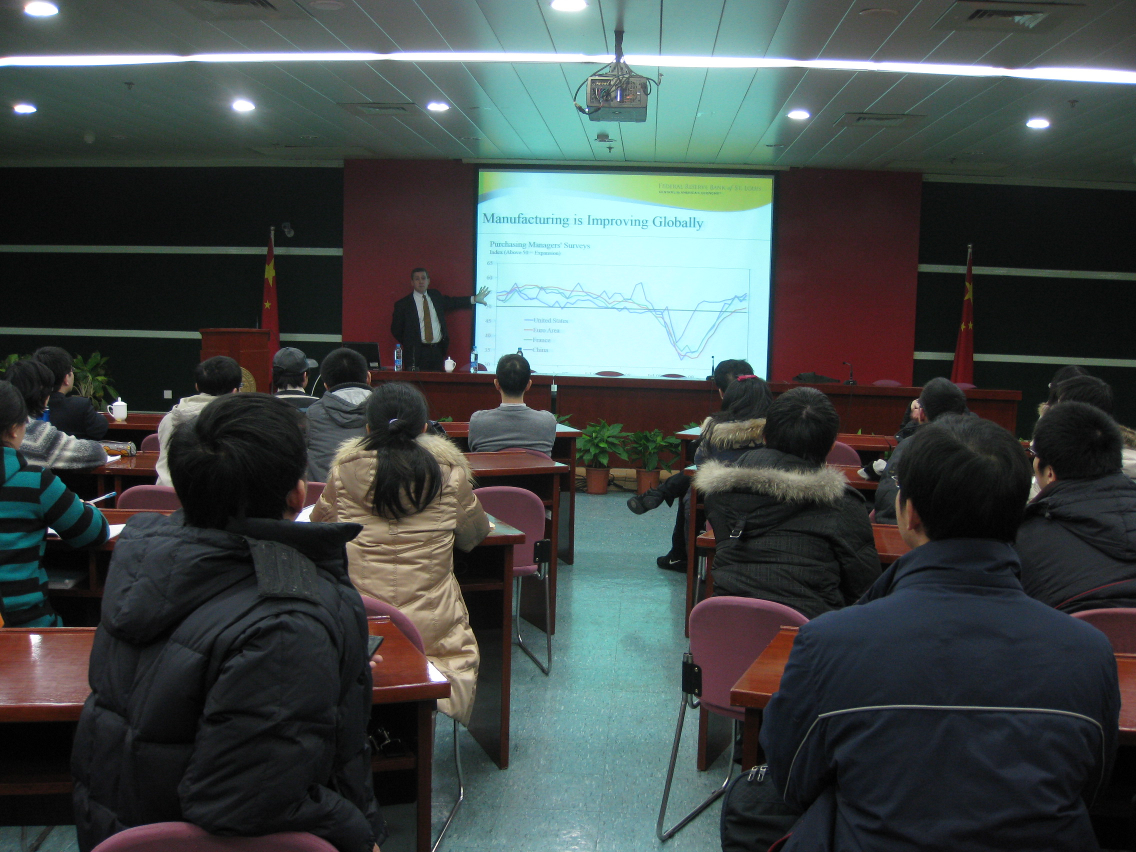 After the meeting, Pres. Bullard delivered a public lecture themed "Global Recovery and the Role of Asset Price Bubbles" at the SUFE administration building to scholars, faculty and students, which also attracted many overseas students. He gave a vivid and convincing description of the global recovery with various data and tables, and analyzed the role of asset price bubbles in a systematic way. His talk aroused animated discussions in the following Q & A session.