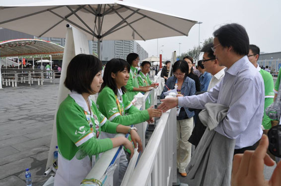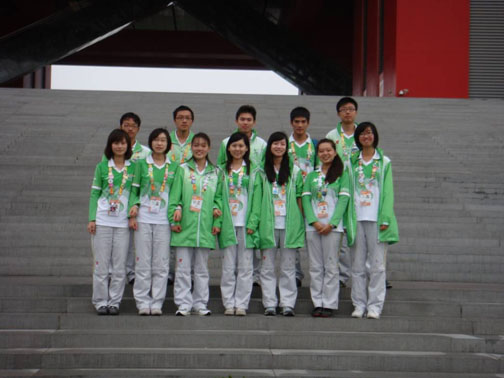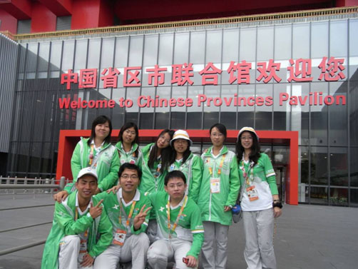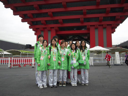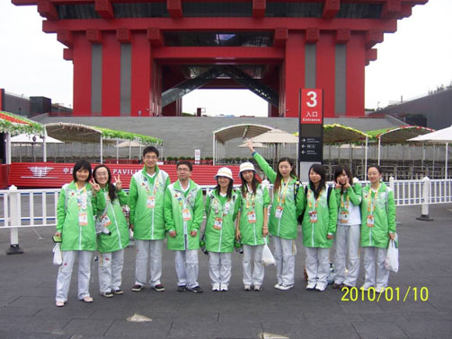 Starting from October 5, 2010, volunteers from SOE and SUFE have been stationed in the Expo Garden to serve and assist the visitors. The green-uniformed SOE volunteers have received much recognition from the event's organizers and visitors for their good preparations and excellent performance for the past few days.