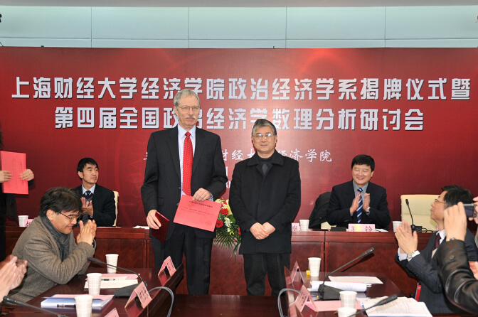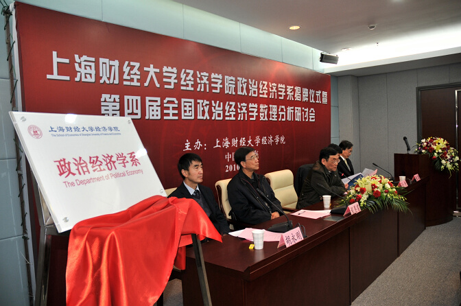 On December 19, 2010, the inauguration ceremony of Political Economy Department of SOE, SUFE and the 4th National Seminar on Mathematical Analysis of Modern Political Economy were held at Room 807, SOE building. More than twenty leading figures, experts and scholars in the field attended the ceremony and seminar, including SUFE Vice President Zheng Sun, Prof. Gang Lin, Vice President of Renmin University of China; Prof. Enfu Cheng, Dean of Marxism Research Institute of the Chinese Academy of Social Sciences; Prof. Lei Shi, Party Secretary of School of Economics, Fudan University, Prof. David M. Kotz, Vice-chancellor of the World Association for Political Economy and Professor of Political Economy, Department of Economics, University of Massachusetts.