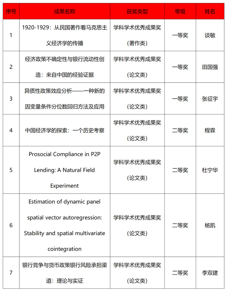 Recently, the Office of the Shanghai Philosophy and Social Science Outstanding Achievement Award Committee officially announced the selection results of the proposed commendation list for the 16th Shanghai Philosophy and Social Science Outstanding Achievement Award. The School of Economics submitted 7 achievements that won the Academic Excellence Award in their respective disciplines, including one first prize in the book category, two first prizes in the paper category, and four second prizes in the paper category.